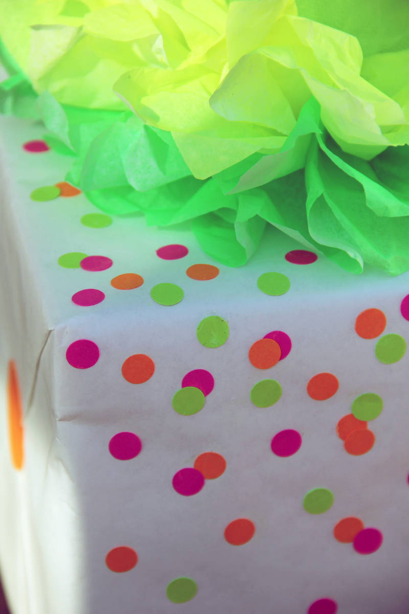 Alright folks, I’m not wasting any time here! Christmas DIYs (slowly!) begin NOW! First up, a little gift packaging love! We all know gifts look pretty schnazy when topped with bows, but how about topping them with itty bitty bows? Itty bitty bows, made of Scotch® Color & Pattern Duct Tape, and strung along a garland, to be exact! Making bows out of duct tape takes just a few minutes and it’s so simple, even the kids can do it (In fact, my niece helped me make this one!). Wrap your finished garland around a gift or a mini tree for a touch of colorful holiday flair.